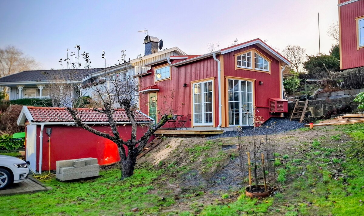 Slappna av i detta unika och lugna boende med utsikt som sträcker sig över hela askimsfjorden ända ut till Tistlarna. Här kan ni sitta och studera naturen, skärgården, höra måsarnas skri till morgonkaffet och gå ner och ta ett morgondopp det första ni gör. Barnen kan röra sig fritt i området då det inte finns någon direkt trafik, istället är det fina naturområden runt knuten. Här finns närheten till Göteborgs centrum(14min), stillheten och fina bad. Varmt välkomna till min gäststuga!