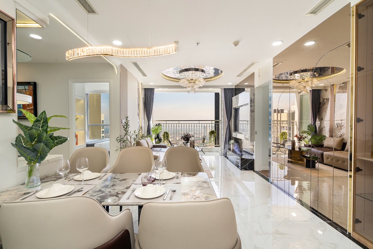 To je stanovanje s 4 spalnicami v stavbi »Landmark 81« – najvišji stavbi v Vietnamu. Spodaj je velik nakupovalni center z restavracijami, zabavo, trgovinami, kinodvorano, razgledom na mesto iz 81. nadstropja in vrhunsko restavracijo. Stanovanje ima vrhunsko pohištvo in lastno zasnovo, opremljeno je s kadjo in pralno-sušilnim strojem ter je primerno za kratkotrajna in dolgotrajna bivanja. V spalnici in dnevni sobi sta skupno 2 velika balkona, druga spalnica pa ima čudovit razgled na mesto.