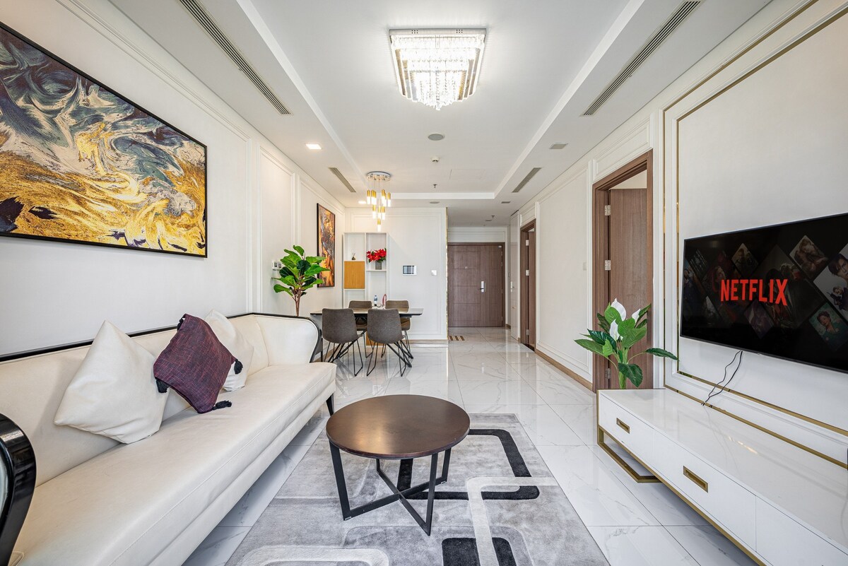 The 4 kinds of apartment with 2 bedrooms in the Landmark area, spacious elegance luxury design, with city and river view. few steps to the Landmark 81. the bedrooms with comfy bed and pillows, 2 smart TV are provided with high speed internet, fully equipped kitchen, towels and basic amenities. There are many restaurants with multi cuisines, food courts, shopping mall, coffee shops, and many attractive activity around... an ideal place for travelers or business trips with your family.