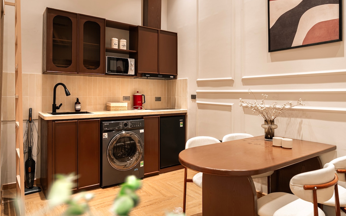 Freshness & healing. A fresh color scheme combined with appropriate utilities will bring lightness to the needs of work or relaxation, everything will become more positive than ever. Let the best things pamper you, wake up with the warmest things. - The apartment has everything you need for a comfortable stay: comfortable bed, stove, kettle, refrigerator, washing machine with Clothes dryer, microwave, air conditioner, hot water, milk bath, shampoo, towels, toiletries.