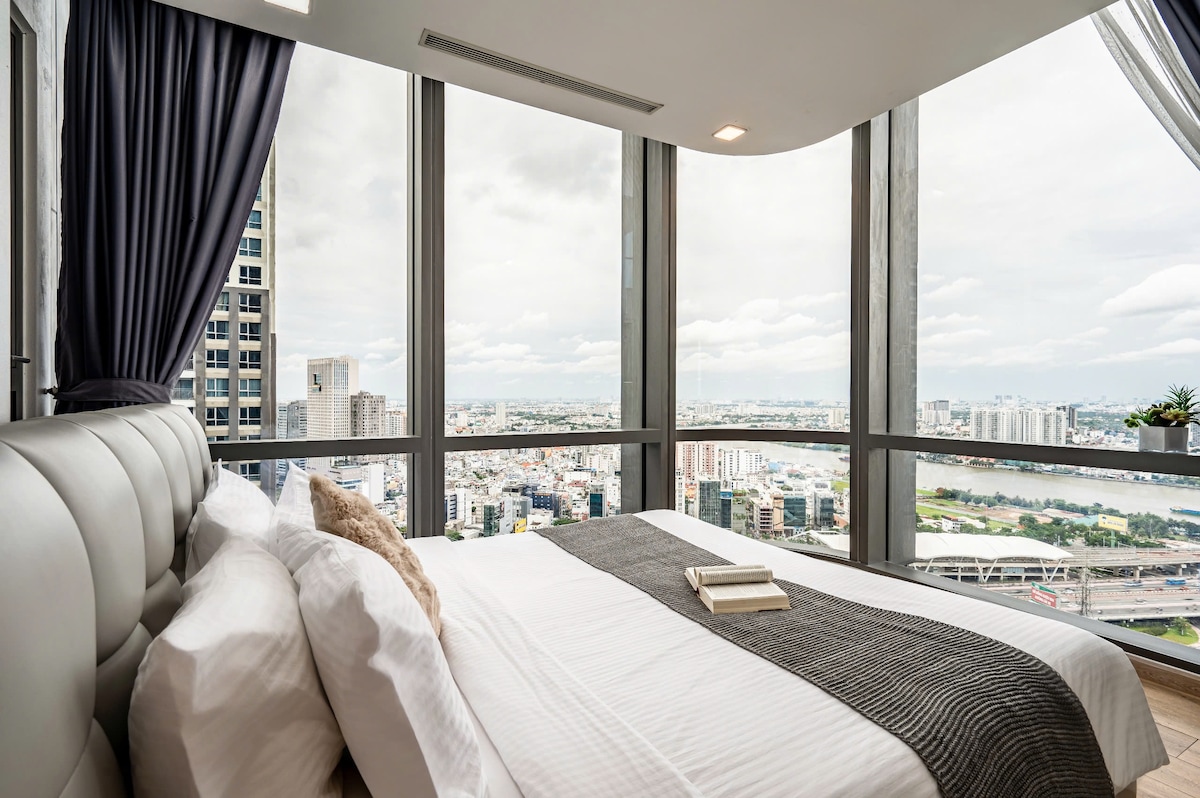 Stanovanje se nahaja v 21. nadstropju stavbe s pogledom na središče mesta in reko Saigon. Dobrodošli v fuziji prefinjenosti in razkošja, uživajte v tem očarljivem prostoru. - Stanovanje ima vse, kar potrebujete za udobno bivanje: udobno posteljo, štedilnik, grelnik vode, hladilnik, pralni stroj, sušilni stroj, mikrovalovno pečico, klimatsko napravo, vročo vodo, mlečno kopel, šampon, brisače, toaletne potrebščine.