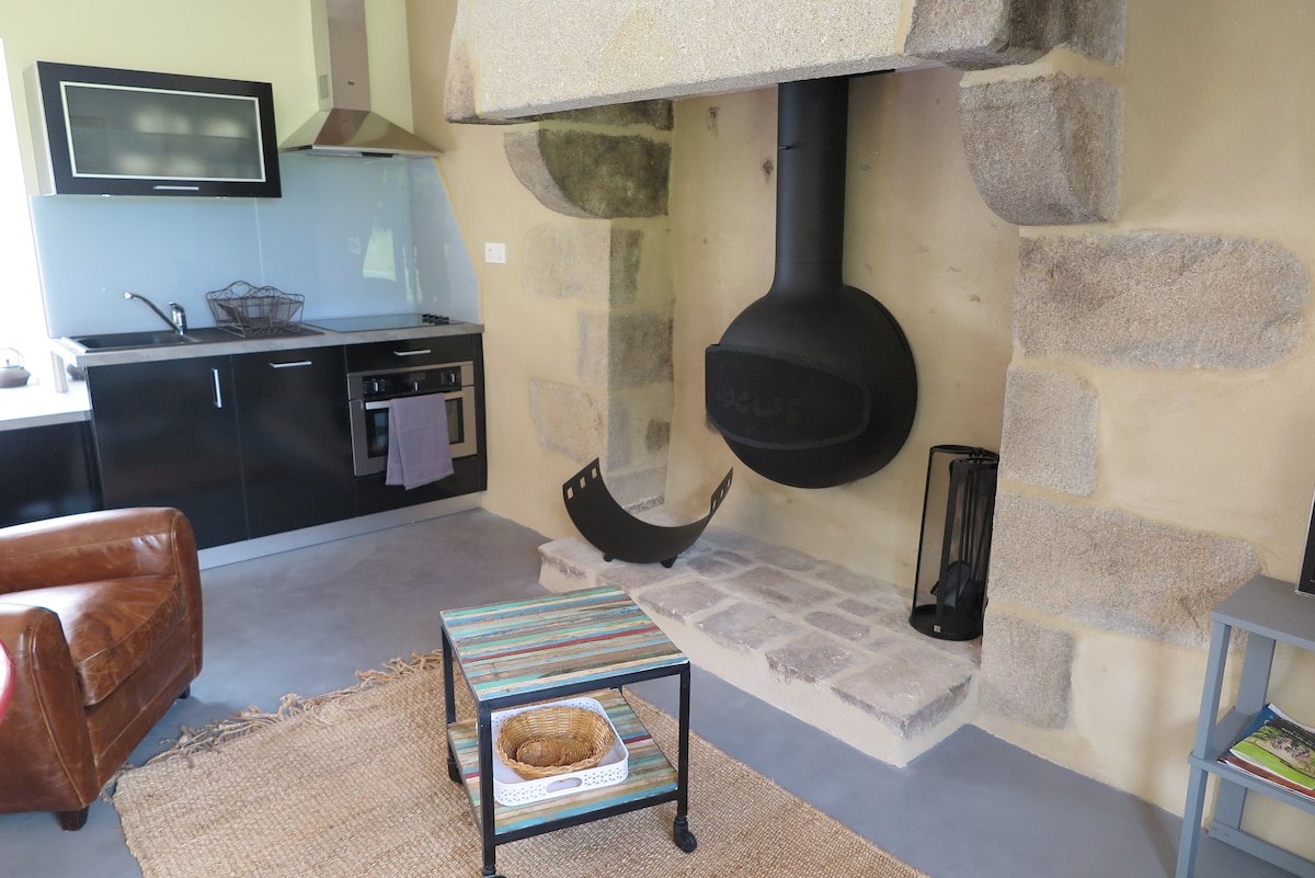 Votre havre de paix entre terre et mer Bienvenue dans notre gîte de charme en Bretagne, un écrin de tranquillité niché au cœur d’un hameau authentique, à quelques pas de la mer. Capacité : 2 personnes Confort et authenticité : Une maison chaleureuse en pierre naturelle parfaitement équipée Au RDC, 1 cuisine équipée avec coin repas. A l'étage, 1 chambre, 1 salon, 1 salle d'eau et 1 WC. A l'extérieur, 1 terrasse privative avec salon de jardin. Accès piscine extérieure et Sauna.