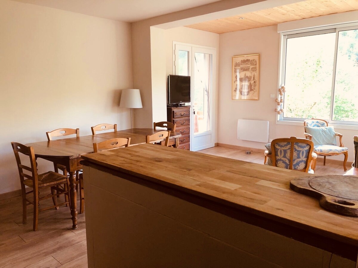 Ob vznožju Corniche des Cévennes, 5 km od Florac-les-3-Rivières, pravo zatočišče miru, ki se nahaja na 3 hektarjih, zaščitenih z reko. Dve spalnici (zakonska postelja s televizijo in omrežjem Wi-Fi), popolnoma opremljena kuhinja, velika terasa s pogledom na reko. Najnižja možnost: 3 nočitve izven julija/avgusta na teden . Idealno za dva para (največ 4 osebe) . Hišni ljubljenčki niso dovoljeni