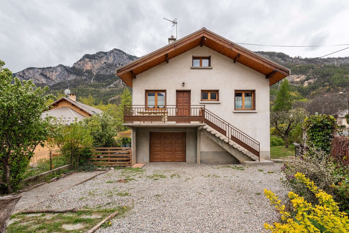 Samostojna hiša na 3 nivojih, ki je kot nalašč za družino, z ograjenim vrtom in garažo za vaše gorsko kolesarjenje, smučanje, kajakaštvo. Ima: 3 spalnice (v vseh 3 nadstropjih) z gorskim kotičkom, popolnoma opremljeno kuhinjo, kopalnico z ločenim straniščem, dnevno sobo V osrčju regije Pays des Ecrins, 20 minut od smučišč (Puy st Vincent, Pelvoux, Serre Chevalier) in 5 minut od trgovin.