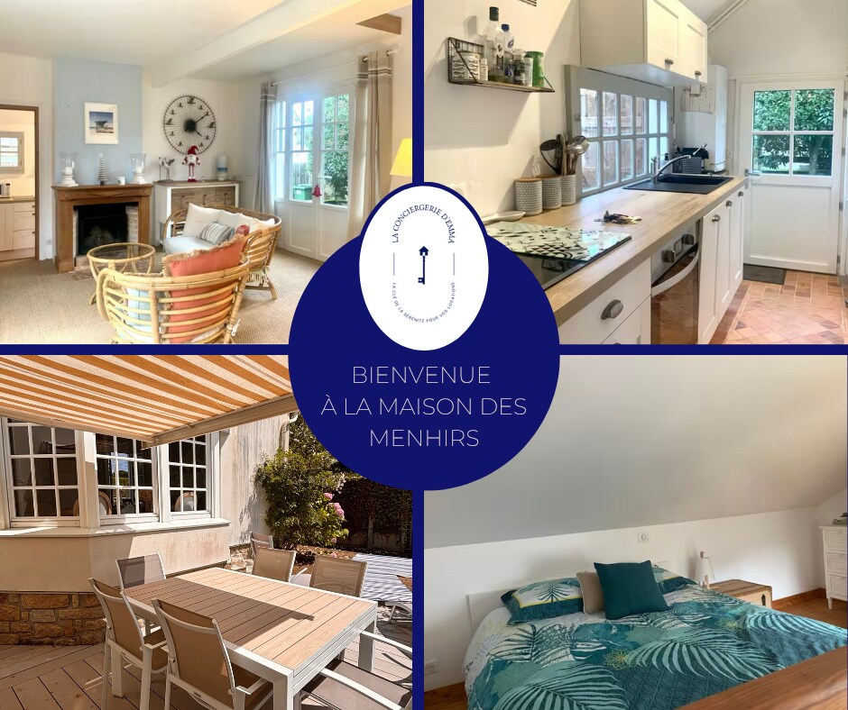 Notre logement, pouvant accueillir jusqu'à 8 personnes, est une maison spacieuse sur deux étages. Située face à la Petite Mer de Gâvres, la maison est agréable pour se retrouver en famille ou entre amis. Balcon, jardin et plage permettent de profiter de l'extérieur et du climat breton. Location uniquement à la semaine en juillet et aout (du samedi au samedi) Conciergerie logée dans une partie indépendante de la maison