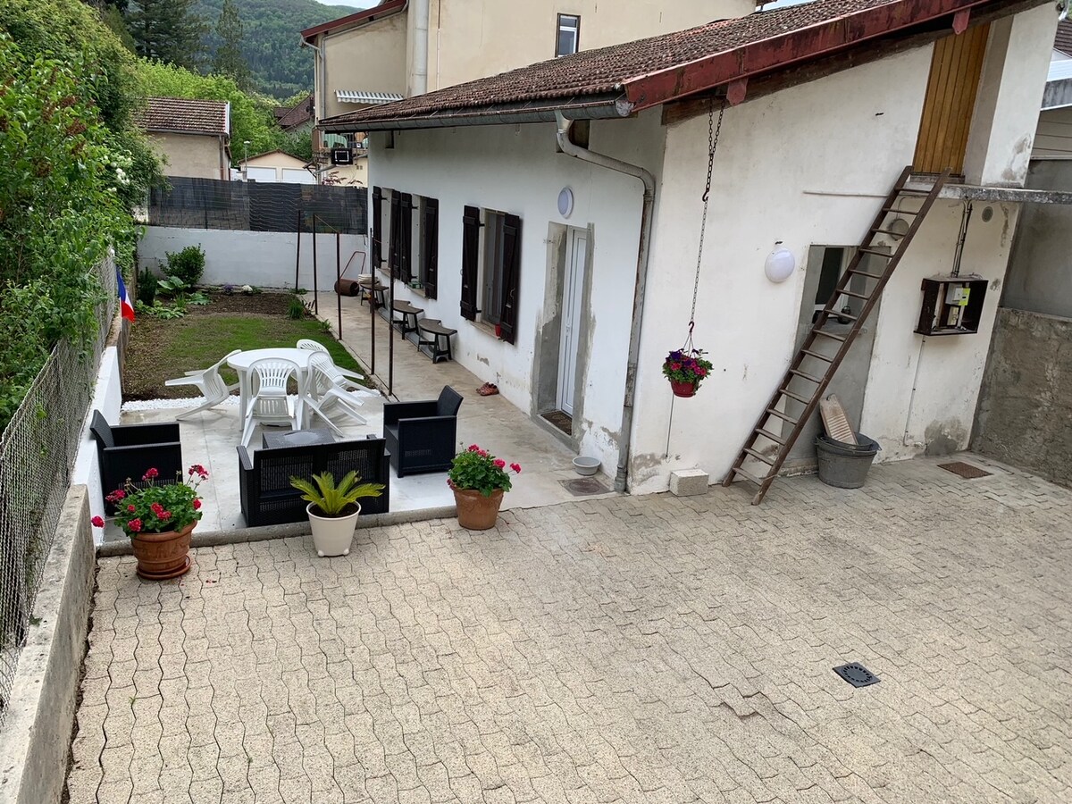 Au rez de chaussé de notre maison, nous vous accueillerons avec plaisir au creux des montagnes du Jura. Départs de randonnées 🥾, proximité avec les cascades et autre beaux paysages ⛰️, notre studio se situe dans un village calme et apaisant à 10 minutes de Saint-Claude. 🪴 Nous sommes à 30 minutes du lac de Vouglans 🏖️ célèbre pour sa couleur azure et a 30 minutes des premières pistes de ski⛷️ L’entretien des draps se fait par une blanchisserie professionnelle 🫧