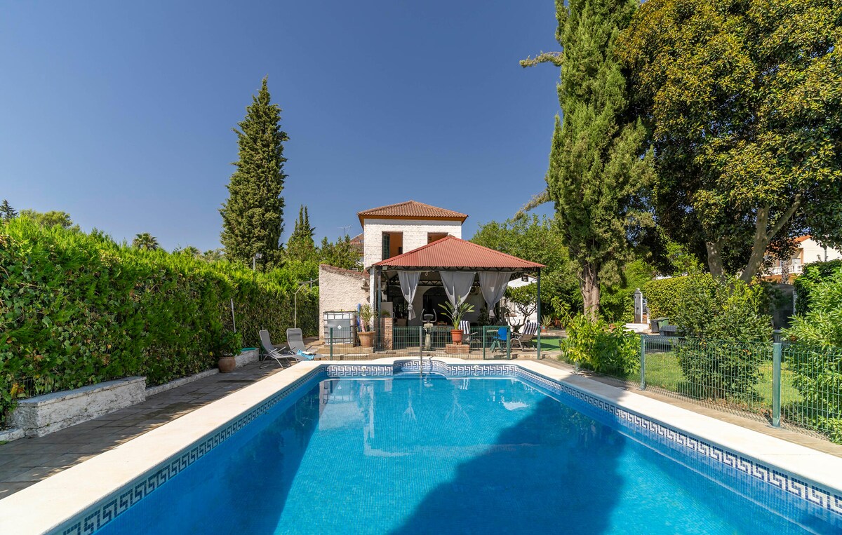 Sprostite se v razkošni, sodobni in eklektični hiši z zasebnim bazenom, ki se nahaja v zgodovinskem rimskem in arabskem predelu Aljarafe. To prostorno, vrhunsko prenočišče je vaše popolno zatočišče, le 15 minut in 11 km od živahnega središča Sevilje. Uživajte v skodelici čaja na osupljivem zasebnem vrtu na strehi, ki so ga skrbno zasnovali lokalni obrtniki s pohištvom po meri. Prefinjena notranjost združuje sodobno eleganco z urbanim pridihom in ponuja brezhiben slog. Uživajte v celoletnih kopališčih v zasebnem bazenu.