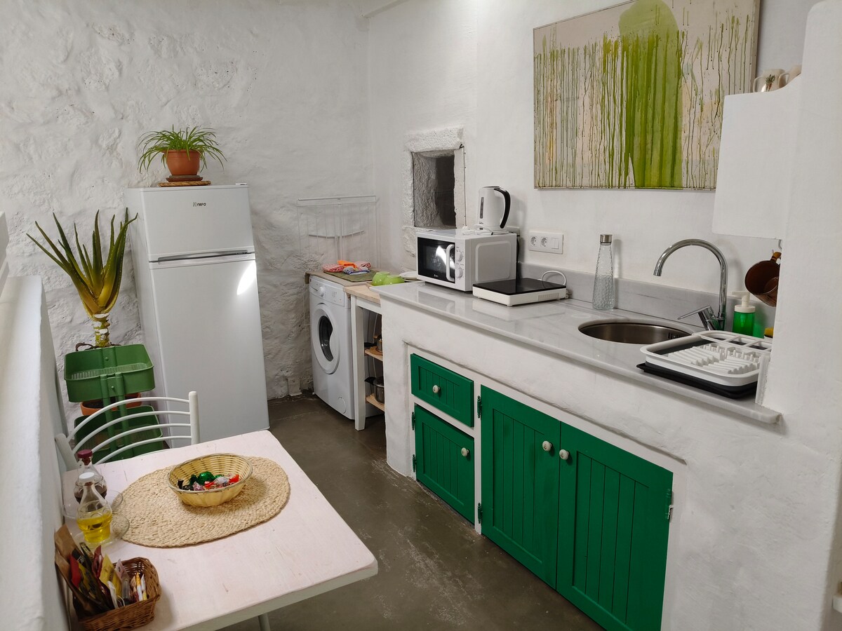 Sodobno predelano stanovanje s površino 100 m² se nahaja v slikoviti vasici v grškem slogu, izklesani iz vulkanske skale. Nahaja se v naravnem rezervatu, med črnim peščenim zalivom in zlatim zalivom. Tufia je kot nalašč za plavanje in potapljanje z masko. Poleg tega ponuja osupljive pokrajine in bogato zgodovino. Raziščite pečine in čudovito okolico, ki je bila nekoč dom prvih prebivalcev otoka, in doživite edinstveno doživetje, ki združuje naravo in mir.