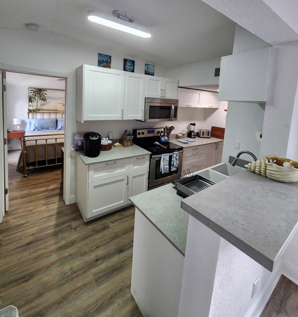ADULTS ONLY PROPERTY 21+, Welcome to PoolHouse FTL. Enter the gates and feast your eyes on this chic, modern, and luxurious resort style oasis. Each of the one bedroom bungalow style apartments open directly onto the enormous travertine pool and sun deck, and EPIC pool that is heated year round. Private, gated, surrounded by lush tropical landscaping. You may cancel all your plans, and lay poolside for your entire stay. Located minutes from the beaches, downtown and the famous Wilton Manors.