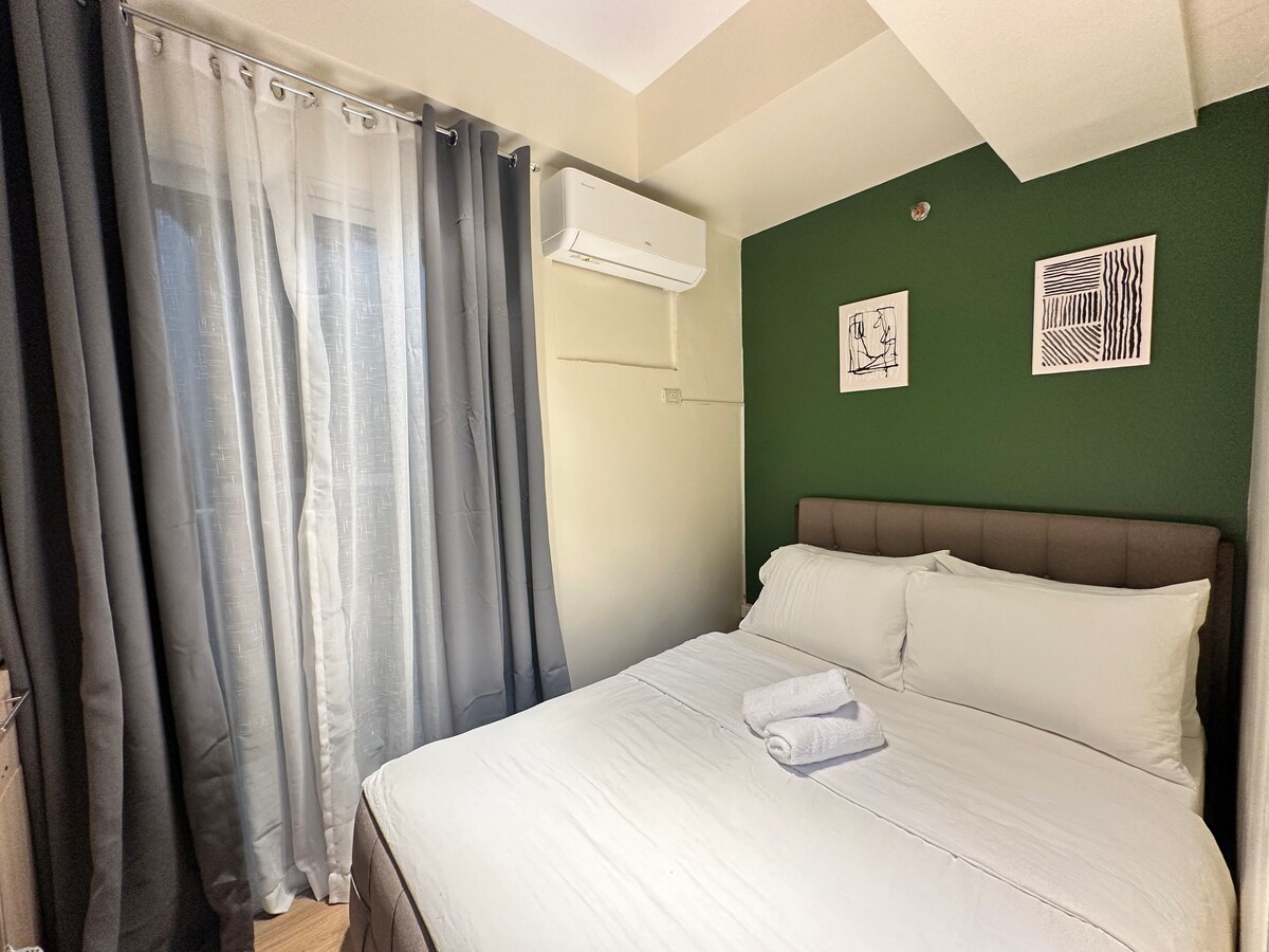 Uživajte v sproščujočem oddihu v našem dobro zasnovanem in maksimalno funkcionalnem enoposteljnem apartmaju z balkonom za prijetno in udobno bivanje. Naše prenočišče se nahaja v osrčju Makatija - kot nalašč za pare, balikbayane, poslovneže, turiste in majhne skupine. V celoti je opremljen z omrežjem Wi-Fi, Netflixom in kabelsko televizijo za vaše počitnice in potrebe po delu od doma. Od restavracij, nakupovalnih središč, kavarn, wellness centrov in bank se lahko sprehodite peš.