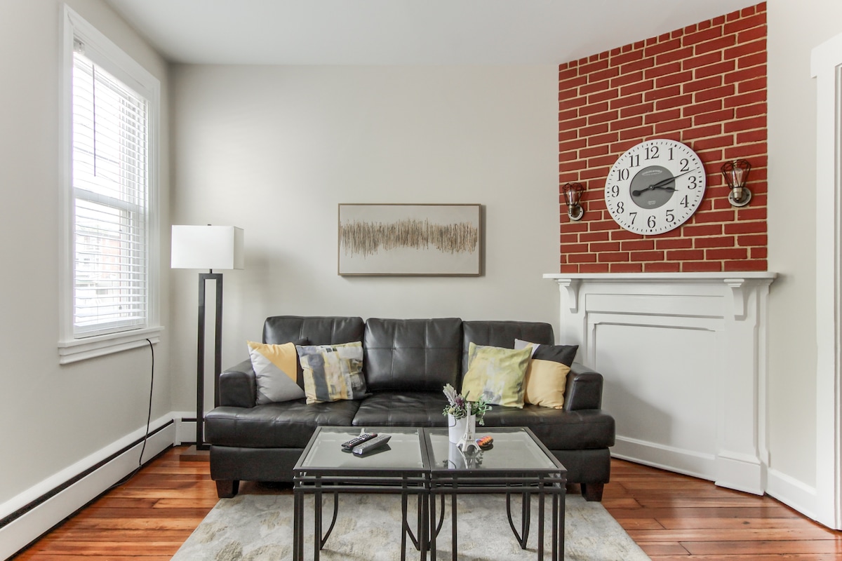 Uživajte v zgodovinskem prenočišču z 2 spalnicama v centru Carlisleja v Pensilvaniji. To prenočišče je pred kratkim obnovljeno, brezplačno parkiranje na ulici in je peš oddaljeno od središča mesta Carlisle. Ta najem se nahaja v nadstropju strmih stopnic. Ta najem je mestna hiša, sosedje so na obeh straneh in spodaj. Ta prostor je V MESTU. Pričakujte, da boste slišali zvoke, povezane z življenjem v mestu. Ne rezervirajte, če niste vajeni vrstne hiše, v mestu, ravni hrupa! Prostor je MAJHEN.
