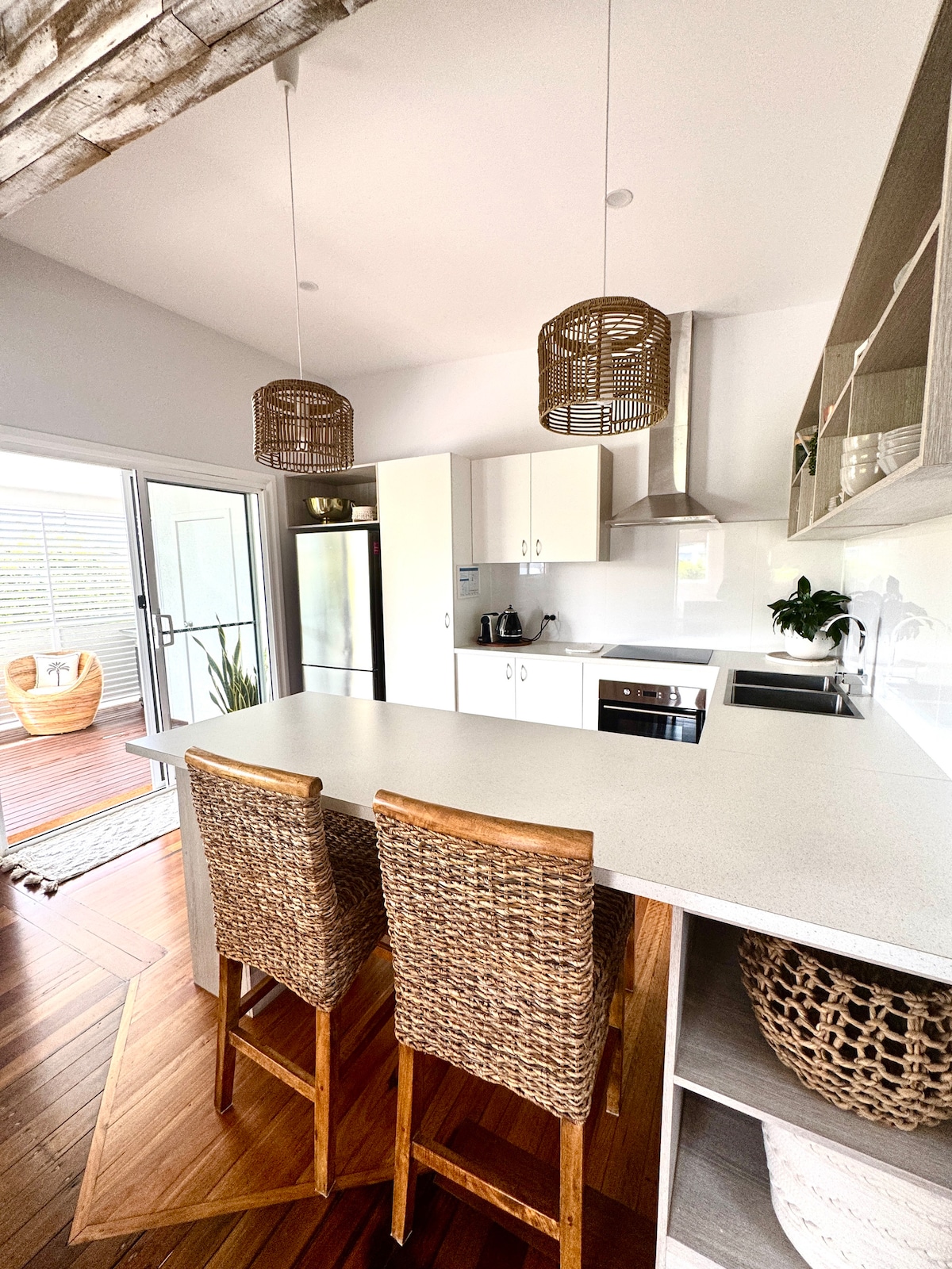 Jolly Nose Hill is known locally for extensive walking and bike tracks. Rainbow Beach hosts regular surfing competitions. The Beach Hotel, 5 mins away, has a good menu and live music at weekends and the Nursery serves yummy breakfasts, both with fun play areas. Up the road in Port Macquarie, you’ll find shops, cafes and restaurants, Glasshouse Theatre, cinema, lighthouse, museums, Koala Hospital.. A little further up the road, but not much, is Stoney Park, an aqua park for both young and old.