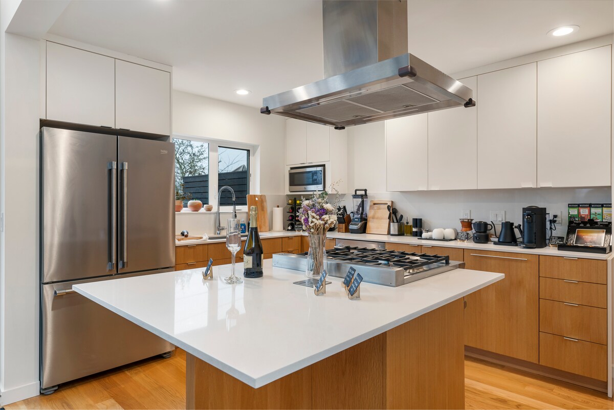 Uživajte v kakovostnem času s prijatelji in družino v tem elegantnem mestnem domu v osrčju Ballarda, kjer se zgodovinski šarm sreča s trendovskimi trgovinami, restavracijami in bari. Uživajte v 360-stopinjskem razgledu na goro Rainier s strešne terase in uživajte v klimatski napravi v toplih poletnih dneh. Market Street je od hiše oddaljen le kratek sprehod ali 1-3 minute vožnje. Do priljubljenih znamenitosti, kot sta Space Needle in Pike Place Market, vas loči le kratka vožnja z Uberjem. Dobrodošli!