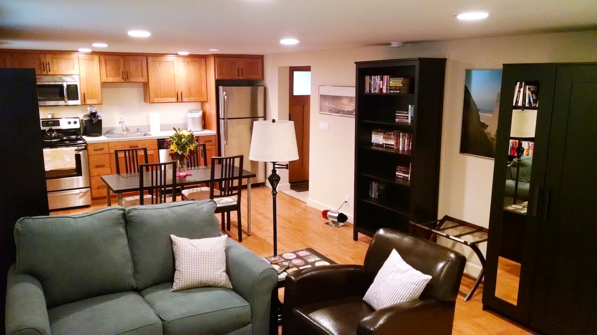 Private, one bedroom daylight basement apartment in Seattle's Magnolia neighborhood. The space is all yours, however my boyfriend and I and two young adult children do live upstairs. We are located near the Sound, Discovery Park, the Ballard Locks, the largest blue heron reserve in the U.S., and a quick 10-15 minute drive to downtown. Visitors will have driveway parking, a private entrance, a fully equipped kitchen, and private bath. Carport is your private patio area.