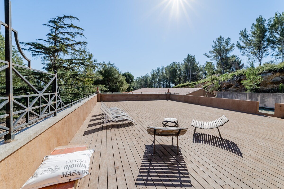 Ta hiša se nahaja na vrhu doline očarljive provansalske vasice Le Beausset in ima veliko teraso ter čudovit odprt pogled na masive in vinske trte. Miren kraj, kjer boste uživali v miru in svežini v masažni kadi (v sončnih dneh), ki je kot nalašč za odklop. To edinstveno bivališče v Provansi se nahaja v osrčju vinskega imena AOC Bandol in je blizu morja ter številnih turističnih in športnih znamenitosti (Sanary, Bandol, Castellet, Calanques)
