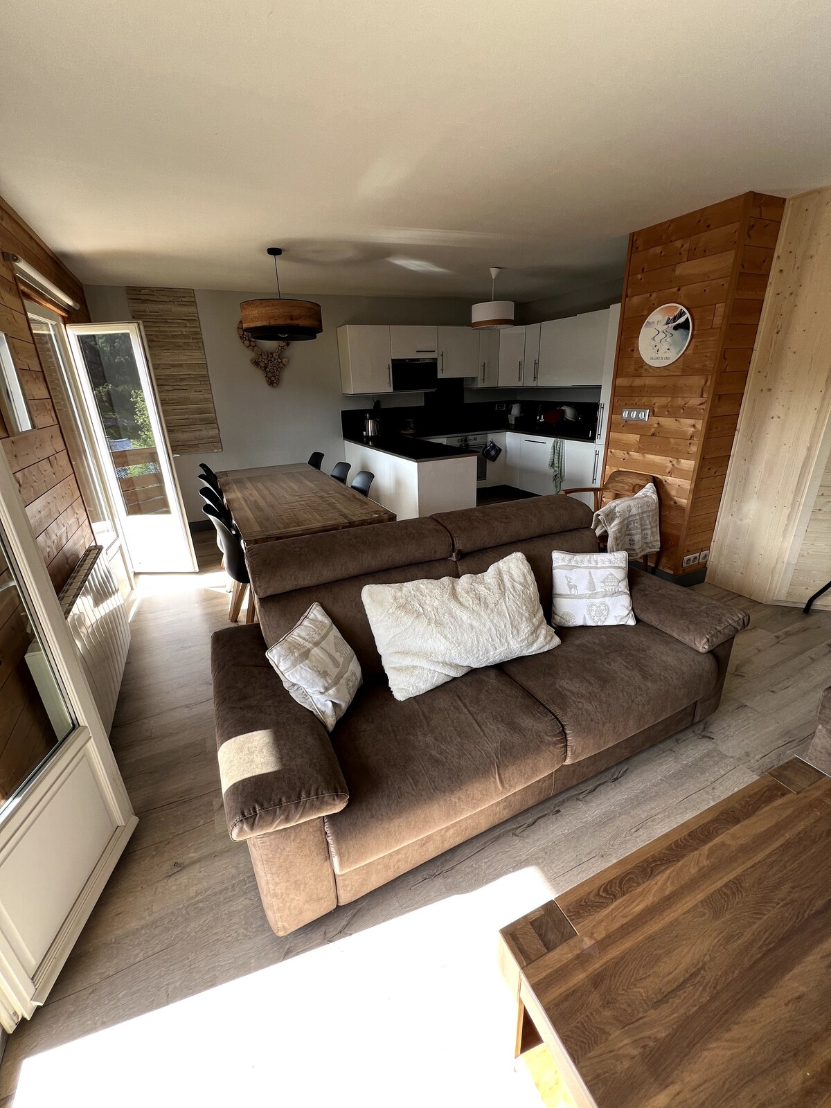Ideally situated in the resort, in a quiet location, this cosy apartment lies at the heart of the French Alps. With its large south-facing terrace and panoramic views 🤩, our apartment promises you a relaxing and unforgettable holiday. Featuring 2 bedrooms, 2 bathrooms and a kitchen that opens onto the living room, every detail has been designed to make the most of the space. Separate toilet. A cellar and private parking are included in the rental.