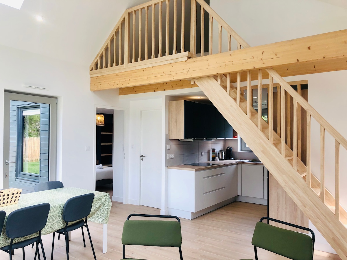 Welcome to our eco-lodge, located in the heart of the Crozon peninsula: Come enjoy an unforgettable stay in this charming individual house consisting of two bedrooms (a suite with private shower room and a mezzanine bedroom open to the living room) with a private terrace and small garden. Situated in a holiday neighborhood, it is close to all amenities and just a stone's throw from the beaches :)
