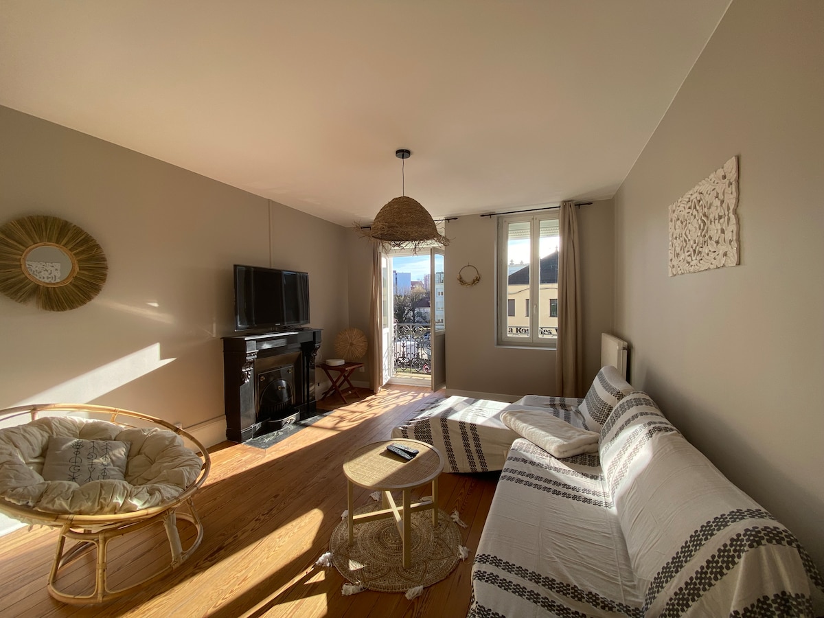 Profitez de ce charmant appartement spacieux et lumineux avec vue panoramique, situé en cœur de ville, au calme, à deux pas de tous commerces et restaurants, à 200m de la gare. Chambre avec matelas Mérinos, séjour avec canapé convertible haute qualité et TV TCL 146cms. Cuisine entièrement équipée : Four, frigo-congélateur, plaque induction, bouilloire, grill pain,Tassimo, vaisselle, poêles... . Entrée avec dressing. Linge de lit et de toilette fournis. Résidence sécurisée.