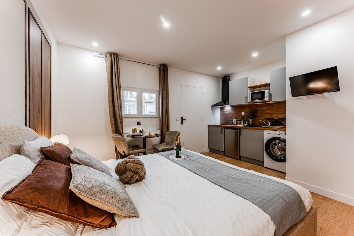 ✨ Uživajte v nepozabnem bivanju v tem čudovitem in okusno prenovljenem stanovanju 🏡 Nahaja se v osrčju starega Bordeauxa, v zgodovinski četrti Saint-Pierre, blizu znamenitega vodnega ogledala Miroir d'eau 💦 in le nekaj minut od ulice Rue Sainte-Catherine, ki je kot nalašč za nakupovanje 🛍️ Tipične restavracije 🍷 in živahni bari v bližini Centralna 🚶♀️ lokacija za peš ogled mesta 💫 Popolno prenočišče za odkrivanje Bordeauxa kot domačini.