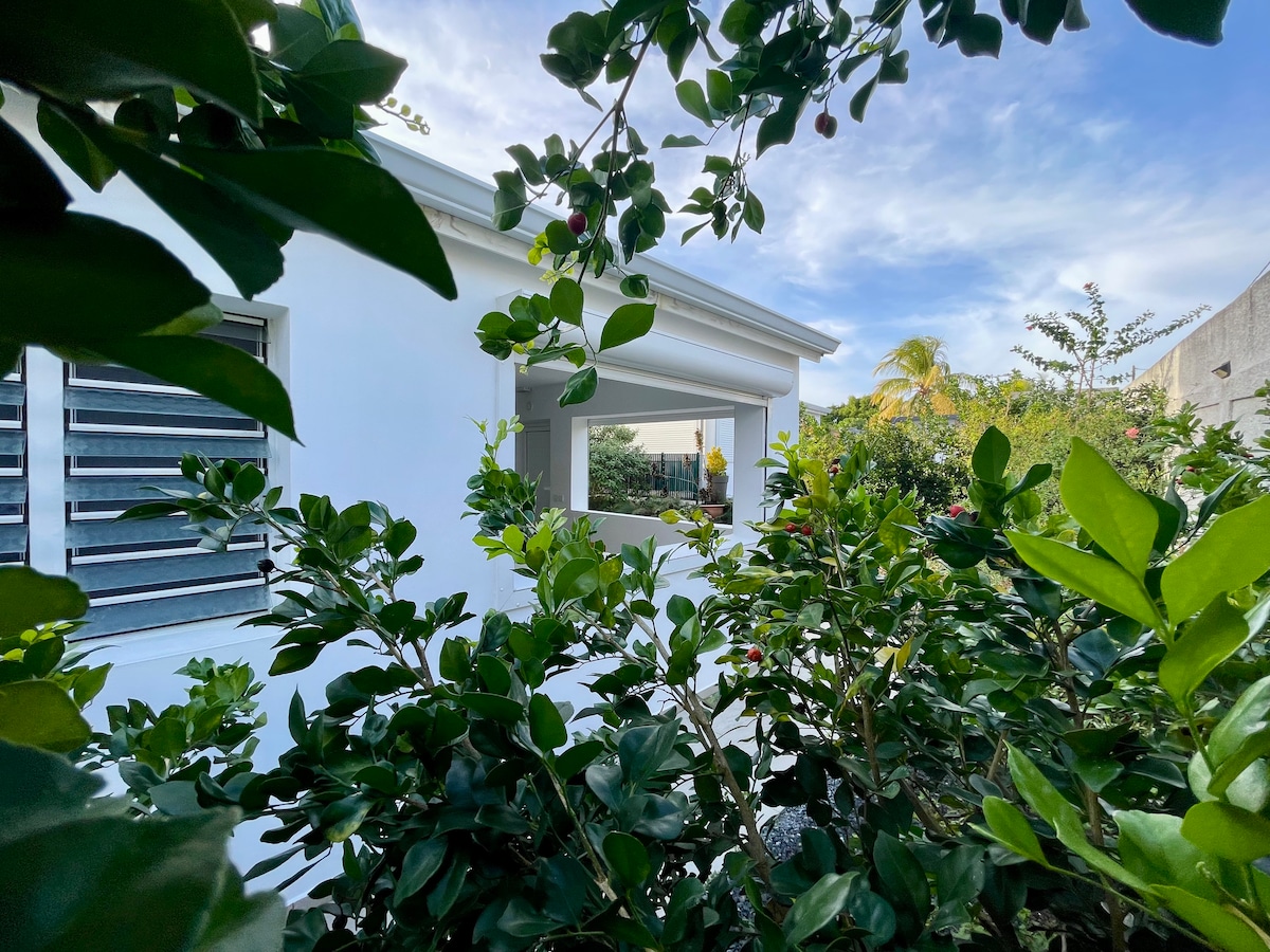 Prostorna, svetla in varna nastanitev. Uživajte v spokojnosti podeželja in preživite nepozabno bivanje na Guadeloupu. Ta nastanitev je kot nalašč za par ali družino. Ima veliko dnevno sobo, 2 prostorni spalnici, kopalnico, pralni stroj, opremljeno kuhinjo, teraso, velik vrt in masažno kad, da boste lahko v celoti uživali na soncu. Nahaja se v čudovitem mestu Le Moule, nedaleč od plaž, restavracij, deskarstva in destilarne.