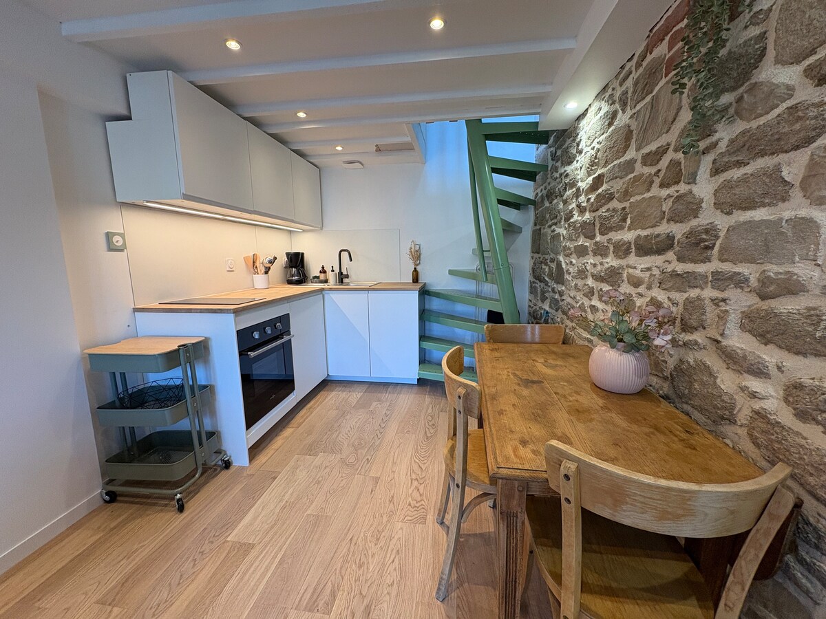 Maison idéalement située. À pied : 2min de la plage et du Golf de Dinard (3min du Club House), à 15 min du bourg et de ses commerces. Profitez d'un cadre exceptionnel avec cette maison pleine de charme sur 2 niveaux : au RdC une grande pièce de vie (un coin salon, une cuisine-salle à manger donnant sur terrasse privative), et une SdeB avec WC). A l'étage, 2 chambres doubles, une salle de bains et un WC séparé Un convertible dans le salon (possibilités de 2 couchages supplémentaires).