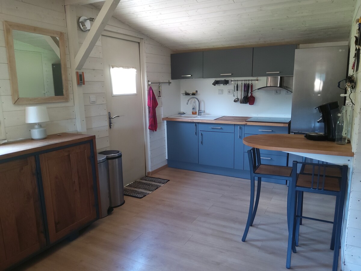 Pomladite se v tem nepozabnem prenočišču, ki se nahaja v osrčju narave. Uživali boste v žvrgolenju ptic in okolici. Sestavljena je iz dnevne sobe, ene spalnice z zakonsko posteljo v dolžini 140 cm. Suho stranišče (ki ga je treba izprazniti ob odhodu) in prha. S SEBOJ PRINESITE RJUHE IN BRISAČE. Možnost najema 10 € Prostor, ki sega od spalnice do prhe, je ozek manj kot70 cm. Topla voda. Klimatska naprava na zahtevo, cena. Čajna kava v prenočišču. Hladilnik, plinski štedilnik. Posodimo 2 kolesi.