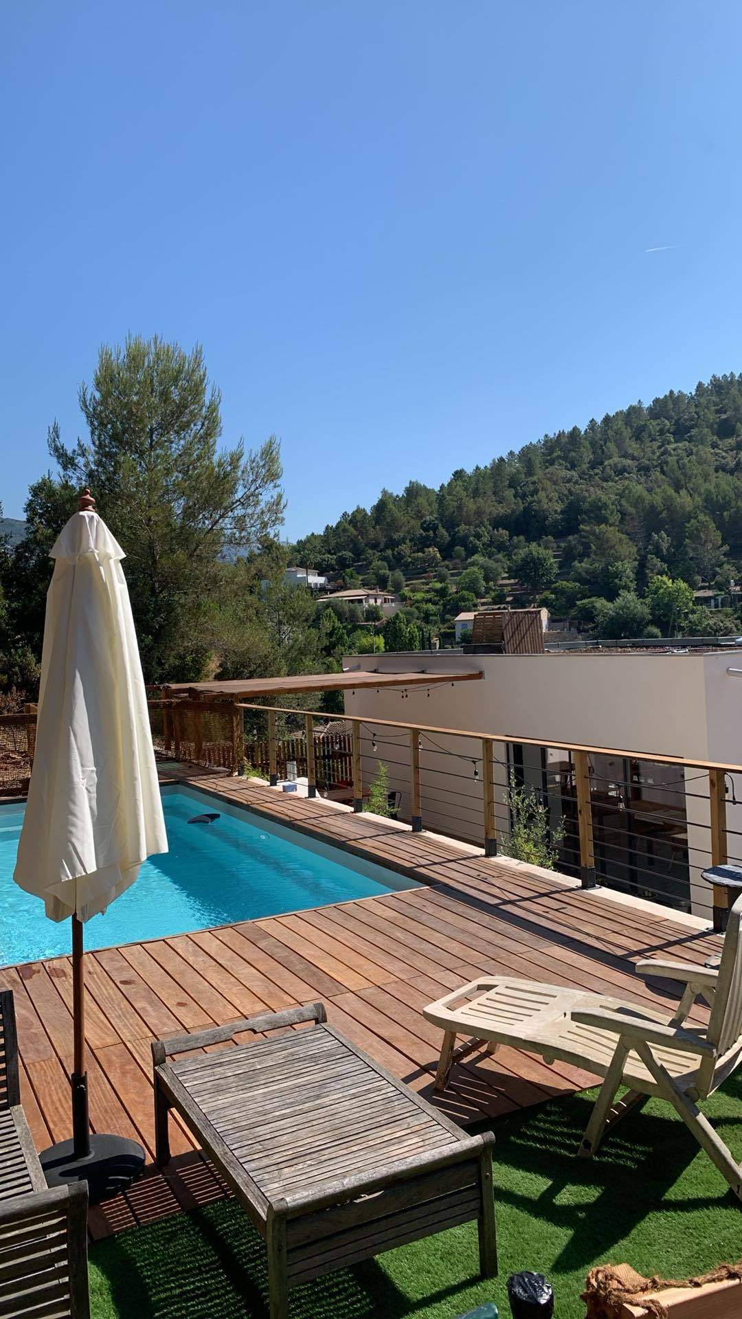 Nudimo najem samo do tedna mirna 150 m2 velika hiša z bazenom in 1000 m2 gozdnatim vrtom s čudovitim razgledom na Tanneron. Njegova jugovzhodna izpostavljenost je idealna. Nahaja se v kraju Auribeau sur Siagne med Cannesom in Grassejem. Na voljo je 8 postelj. Ima velik dnevni prostor, 1 kuhinjo, 3 spalnice s klimatsko napravo (zakonska postelja) , 1 velik mezzanine z 2 enojnima posteljama, 2 kopalnici z WC-jem in ločeno stranišče. Hiša je opremljena z omrežjem Wi-Fi.