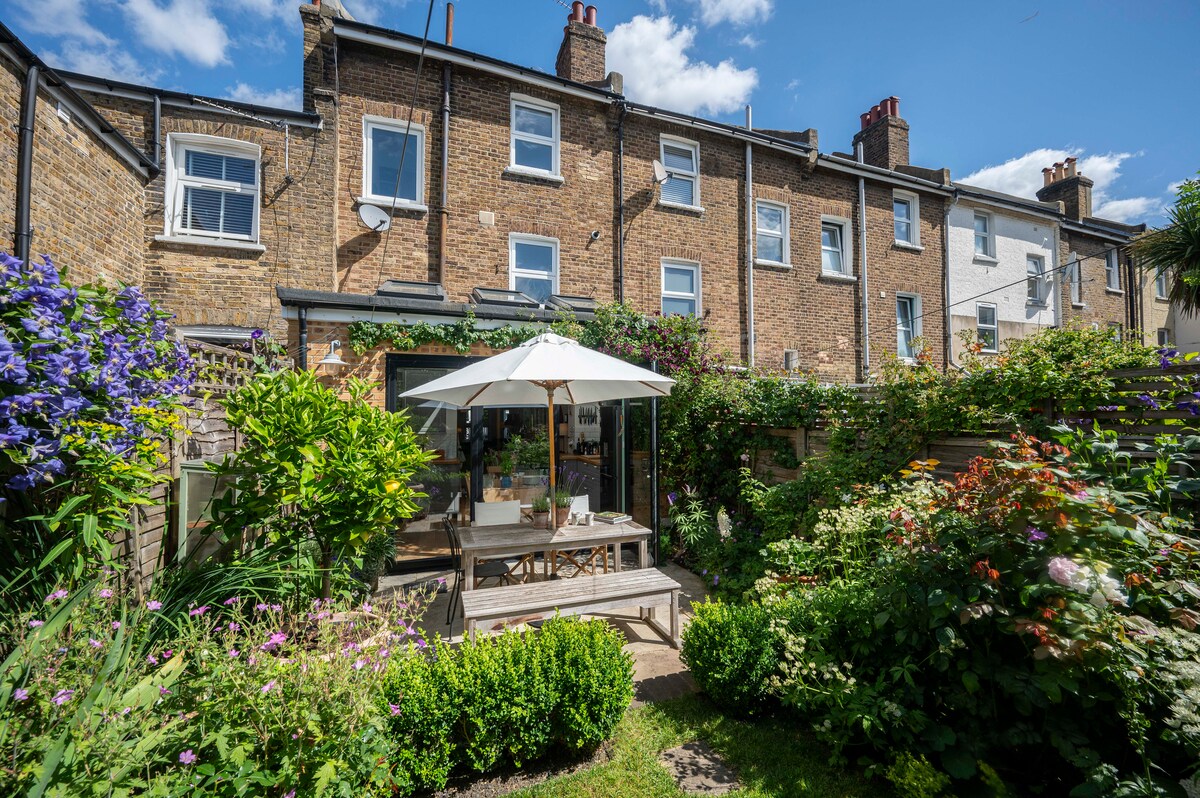 Elegantno oblikovana vrstna hiša v Londonu - vrtna oaza