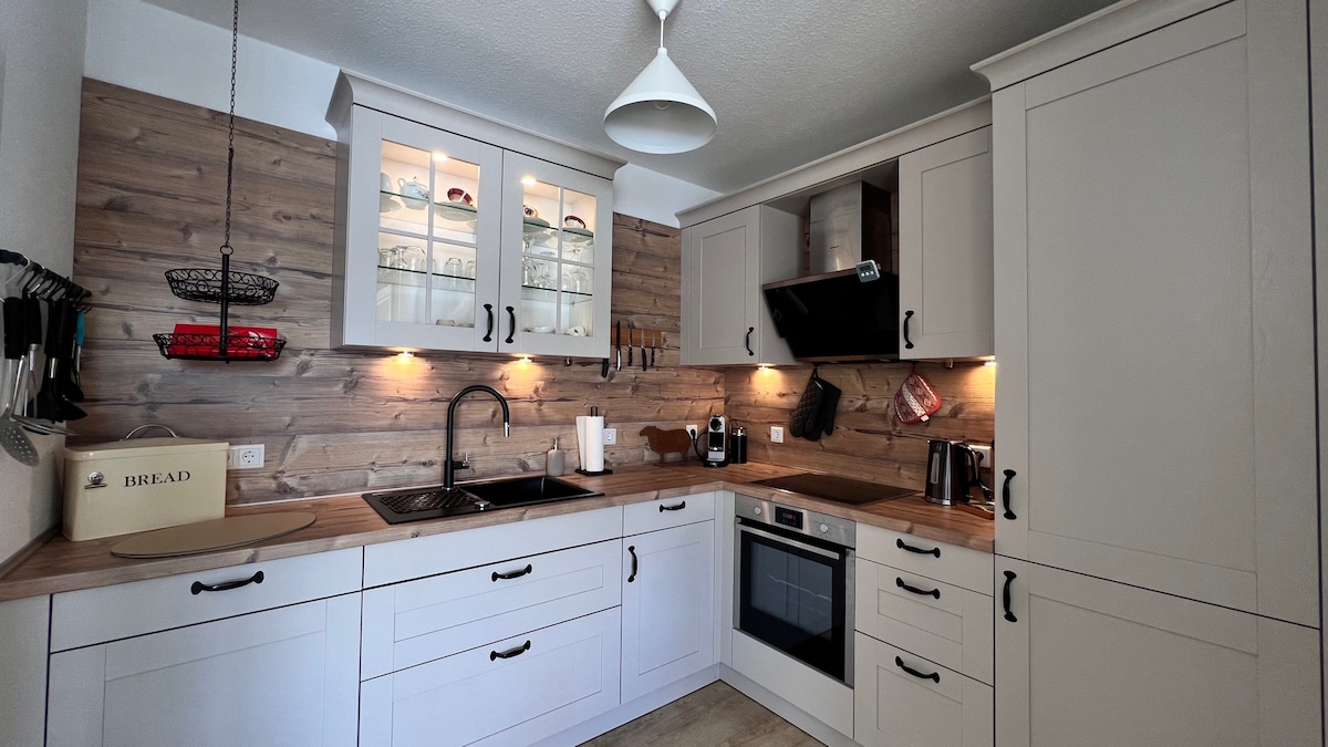 Z veliko pozornosti do detajlov je bilo to stanovanje zgrajeno v starem, navedenem Gulfhofu. Tukaj boste živeli sredi narave, zelo blizu vzhodne frizijske pohodniške poti. Staro mestno jedro Leerja je oddaljeno le 6 km. Na terasi z južno orientacijo in pogledom na graft ter naravne pašnike lahko pozabite na vsakdanje življenje in se sprostite. Stanovanje ima spalnico z zelo udobno zakonsko posteljo (1,60m x 2,00m). V dnevni sobi z odprto kuhinjo je raztegljiv kavč širine 1,40m. Na voljo je tudi TV z DVD predvajalnikom. Kuhinja je opremljena s pomivalnim strojem, hladilnikom, štedilnikom s pečico,opekačem kruha, grelnikom vode in aparatom Nespresso. Če je potrebno, sta dve kolesi (28-palčno moško in žensko kolo) brezplačno za čas bivanja po dogovoru. Za vaša e-kolesa je na voljo možnost shranjevanja/ polnjenja v skednju, ki ga je mogoče zakleniti.