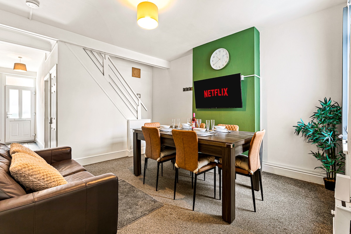 Hiša s teraso s 🏡 pastelno tematiko 🦆 Gostitelj: @Ducklingstays 🦆 🏡 Nahaja se nedaleč od središča Kibworth Beauchampa. 🏡 2 minuti od pivnic, supermarketa, indijske, kitajske, trgovine s čipom in kebaba 🏡 Brezplačno terensko parkiranje 🏡 Hitri Wi-Fi 🏡 65-palčna kino soba Smart TV. 🏡 3 dvoposteljne spalnice s telovadnico in popolnoma opremljeno kuhinjo v 4 nadstropjih 🏡 Stopa odzivnosti gostitelja v celoti in se odzove v roku ene ure Tukaj smo, da poskrbimo, da je vaše bivanje primerno za jajca. 🥚🎉