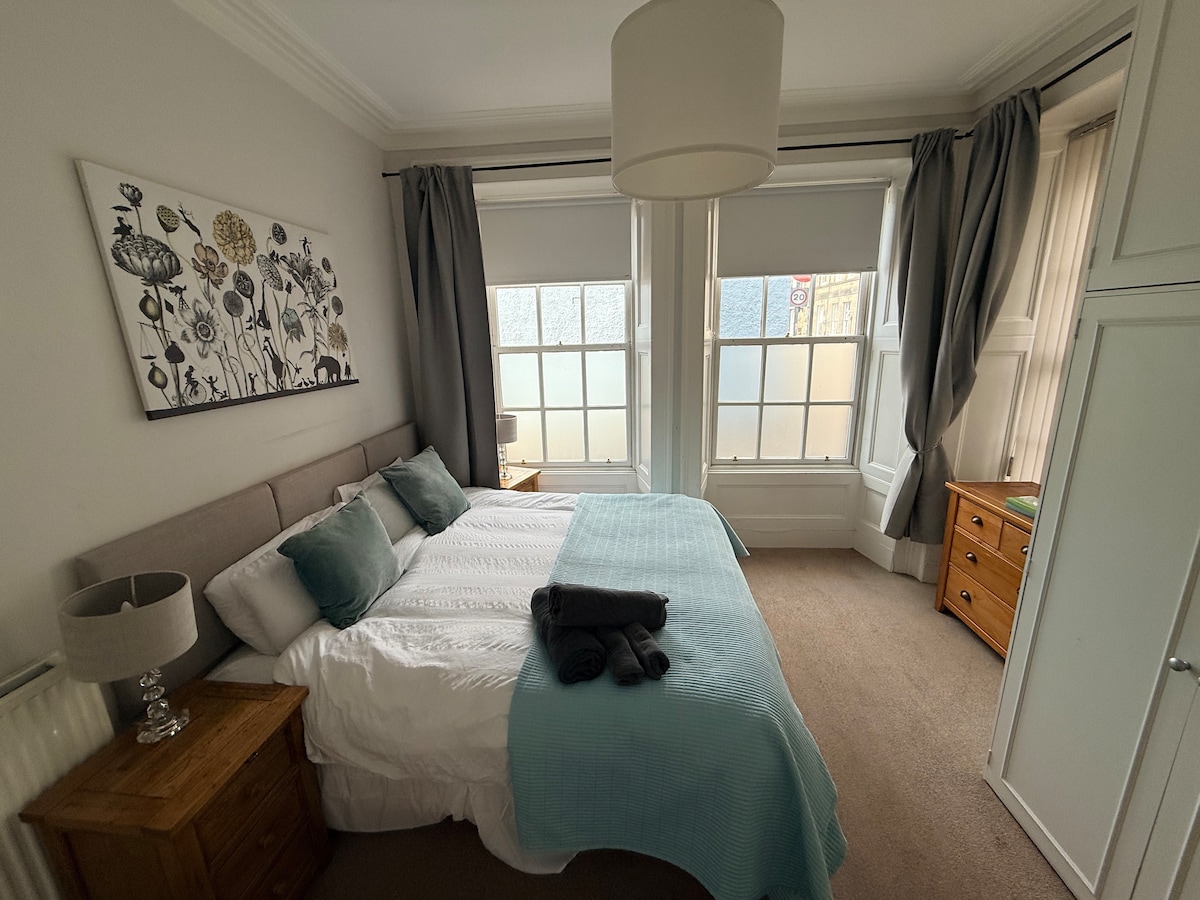 Elegantno gruzijsko mestno stanovanje v Edinburghu New Town Unescove dediščine je iz leta 1825. Ker je 2 nadstropji višje, se razprostira čudovit razgled proti severu. To mirno stanovanje se idealno nahaja v bližini središča mesta - peš do večine glavnih znamenitosti, kot so Holyrood Palace, Playhouse Theatre, Princes Street in staro mestno jedro. Zakonska postelja (Združeno kraljestvo), kopalna kad in prha, udoben dnevni prostor, popolnoma opremljena kuhinja z jedilnico za 4 osebe. Opomba: v stavbi ni dvigala.