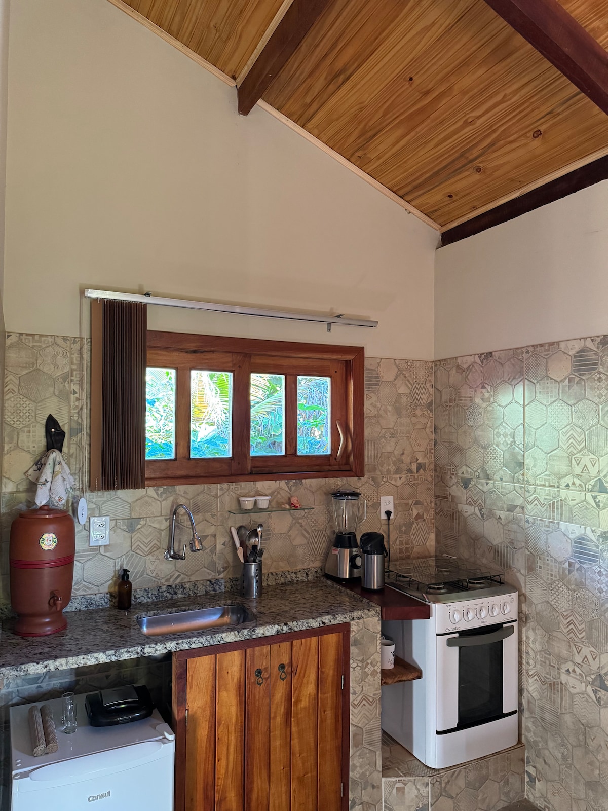 O estúdio além de estar em uma localização privilegiada, é super bem equipado para garantir uma estadia perfeita, seja para uma viagem curta ou longa. O entorno é repleto de plantas que atraem pássaros e borboletas, trazendo ainda mais encanto ao ambiente. E se o seu desejo é relaxar e se desconectar, basta caminhar alguns passos até o rio que corre na parte de trás da propriedade. Lá, você poderá meditar ao som da água e das árvores, em meio a uma atmosfera de pura tranquilidade.
