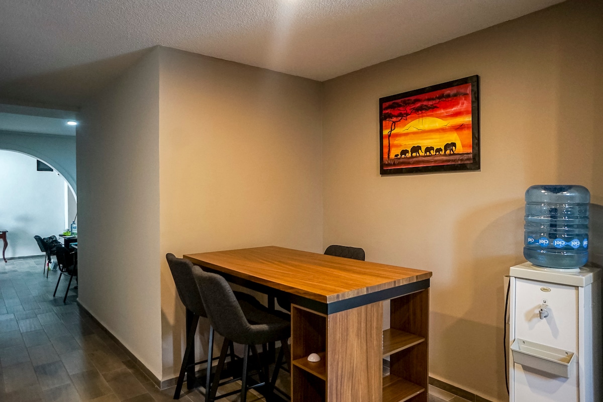 Vzdušje v nastanitvi je zelo udobno in osvetljeno. Nahaja se na trgu ustanoviteljev v središču mesta León, ki je v osrčju mesta, kar vam omogoča, da doživite edinstveno izkušnjo. Stavba, v kateri se nahaja stanovanje, je prva stavba, ki je bila zgrajena iz betona v mestu León Gto leta 1940, je popolnoma prenovljena, vendar vzdržujemo prvotna tla, vrata, okna in ograje, tako da lahko uživate v stari prenovljeni konstrukciji, ki vam bo všeč