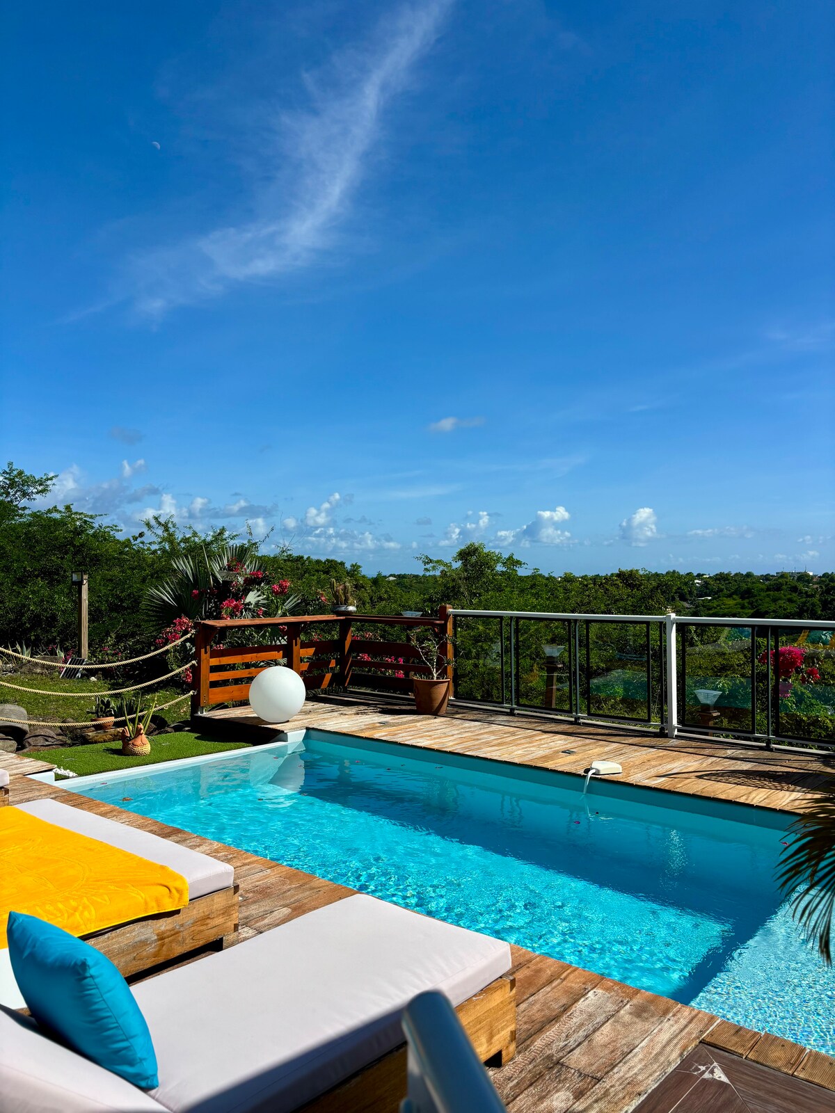 🌺 Bienvenue à la Villa Iséa Offrez-vous une parenthèse d’exception au sommet du Gosier, avec une vue à couper le souffle sur la mer, les Saintes et Marie-Galante. Profitez d’une immense terrasse et d’une piscine privée, bordée de transats confortables, pour savourer chaque instant au soleil ou admirez la magie des couchers de soleil. La Villa Iséa allie confort et design contemporain pour vous offrir une expérience inoubliable, à quelques minutes des plages et du centre-ville du Gosier.