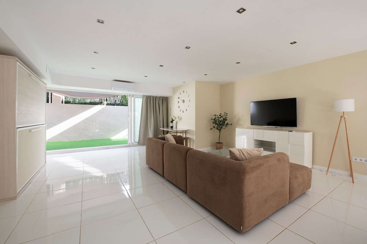 Brand new ground floor apartment with garden and independent entrance. Ideal for families and friends. Very close to Barcelona , Castelldefels beach, supermarkets, pharmacy, bank and public transport. Very quiet residential area. Smoking is not allowed inside Apartamento planta baja con jardín, entrada independiente, totalmente nuevo a estrenar. ideal para familias y amigos. Muy cerca de Barcelona, la playa, supermercados, farmacia, banco y transporte público. Zona residencial muy tranquila.