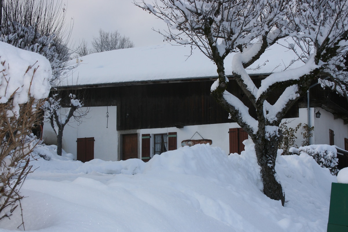 Udobno in romantično pritlično stanovanje v udobni savojski hiški na deželi: popolnoma opremljena kuhinja, ločena italijanska prha z WC-jem, bivalni prostor z električnim kaminom in talnim ogrevanjem, TV, pisarniški prostor v spalnici. Velika terasa, opremljena z osupljiv razgled iz zraka na Combloux les Aravis in Fiz, le 1,5 km od gondole princese Megève (Domaine Evasion Mont Blanc), odhod številnih sprehodov (posojila s krpljami). Brezplačno parkiranje pred stanovanjem.