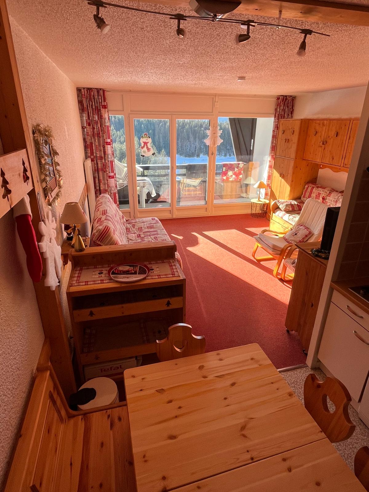 Popolnoma opremljena in topla garsonjera za 2 do 4 osebe, ki se nahaja ob vznožju smučišča . Rjuhe , brisače in kuhinjsko perilo so na voljo . Pohodniški odhod poleti in pozimi, gorsko kolesarjenje,ribolov na nadmorski višini jezera... Na voljo so tudi aparat za kavo, aparat za raclette, majhna pečica in mikrovalovna pečica, podstrešna postelja ter kavč in prešite odeje. Brezplačno parkiranje in klet za shranjevanje opreme za prosti čas.
