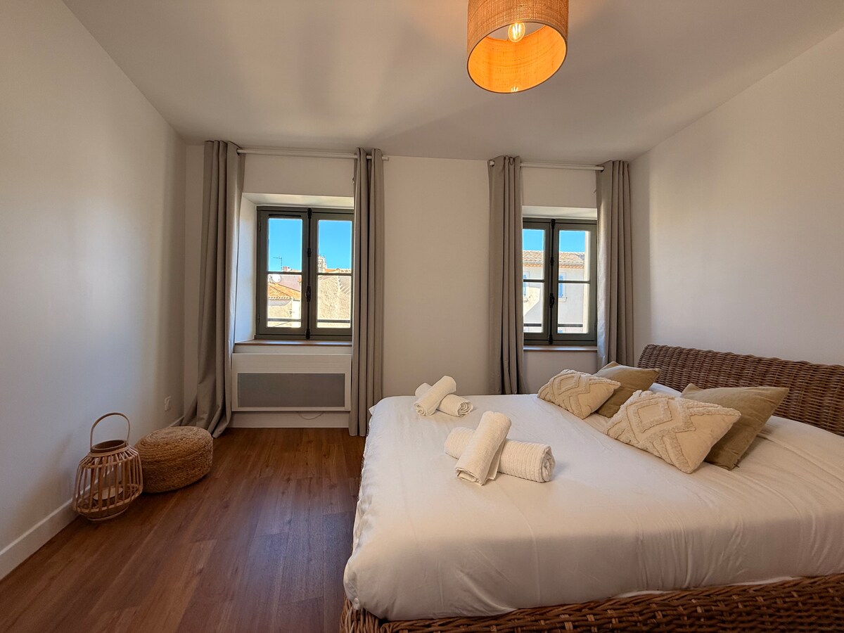 Beautiful 50 sqm character apartment, peacefully located in the courtyard of a historic 1850 building. Set on the 2nd floor with no elevator (spiral staircase), it enjoys an exceptional location in the heart of Narbonne, just steps from Les Halles. Elegantly renovated, it features a cozy living room with sofa bed, equipped kitchen, workspace and a lovely suite with a dressing room. Perfect for a comfortable and authentic stay.
