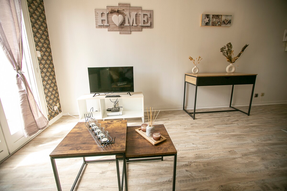 Udobno stanovanje 🧡 se nahaja v središču mesta, vendar je popolnoma mirno. Ponuja vam vse, kar potrebujete, da bo vaše bivanje prijetno in spokojno. Uživajte v njegovi osrednji lokaciji. Imeli boste koristi od vse opreme, ki vam bo olajšala bivanje: supermarket, banke, lekarna, pekarna (La Muriautine, ki se nahaja na 52 rue Paul Doumer, 200 metrov od stanovanja, je znan po svojih obrtnih izdelkih in pecivu, ki premika gurmane).