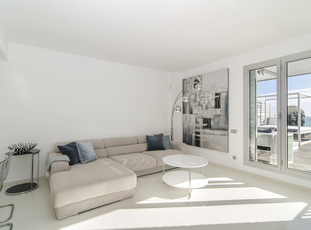 Sprostite se in uživajte v osupljivem pogledu na morje v tem mirnem, elegantnem in čudovitem dupleksu! Ta 3-sobna namestitev, ki sprejme 6 oseb, se nahaja v majhni skupnosti tik pred Sitgesom in omogoča dostop do neskončnega skupnega bazena, neverjetnega obalnega pogleda in ima vso sodobno opremo, ki jo boste potrebovali. Okusno urejen in opremljen za udobje, prostor je popoln oddih za počitnice z brezplačnim zasebnim parkiriščem, dvigalom, BREZŽIČNIM INTERNETOM, pametno televizijo in klimatsko napravo.