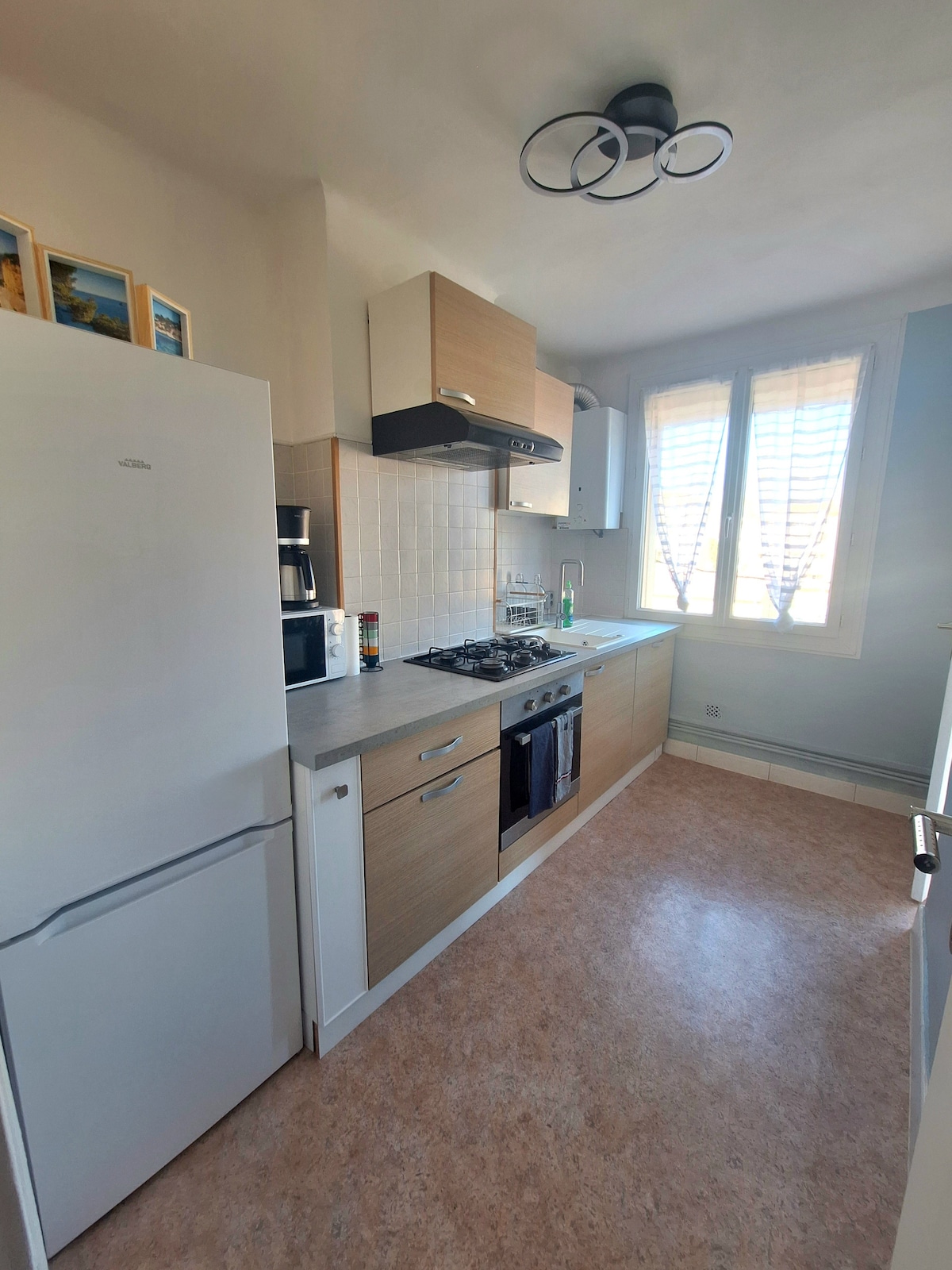 Stanovanje T3 velikosti 58 m2, mirno območje, z 2 spalnicama in velikim raztegljivim kavčem. Kuhinjska pečica, mikrovalovna pečica, pomivalni stroj Ločeno stranišče Terasa, obrnjena proti jugu, dostopna iz velike spalnice ali dnevne sobe, idealna za kavo na soncu 🌞 Popolnoma se nahaja 4 minute od izvoza z avtoceste Dve veliki površini na 700 m Kolesarska pot in avtobusna postaja na vzporedni ulici Dostop do morja 20 minut hoje (bar, restavracija) z majhnim pristaniščem za smer čolna Toulon (2 €)