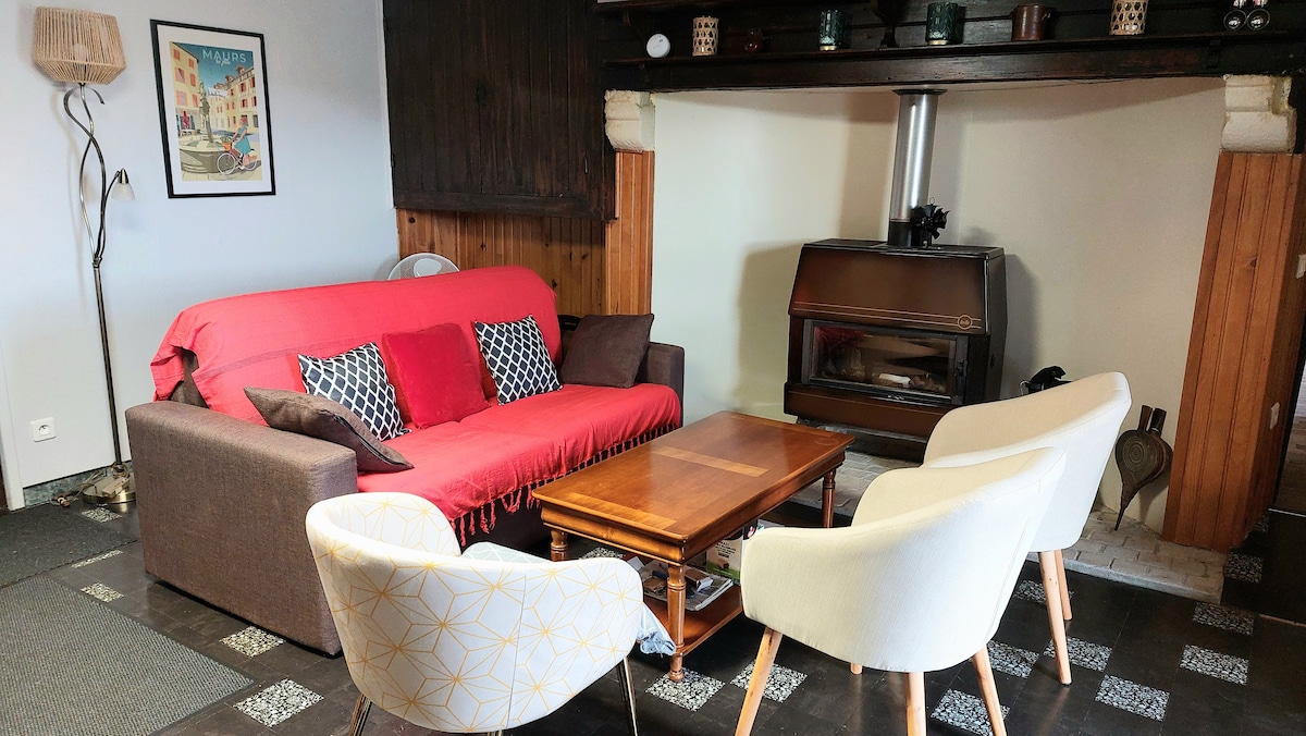 Očarljiva kamnita hiša, ki je bila v celoti prenovljena v osrčju srednjeveške vasi Villeneuve d 'Aveyron; z 93 m2 v 2 nadstropjih in tremi spalnicami boste imeli vse sodobno udobje v očarljivosti starega. Trgovine v bližini z obilico poletne zabave in lokalnih trgovin so oddaljene 2 minuti hoje. Vse lokalne izdelke boste našli v najbolj čisti tradiciji vzreja in lokalne kulture.