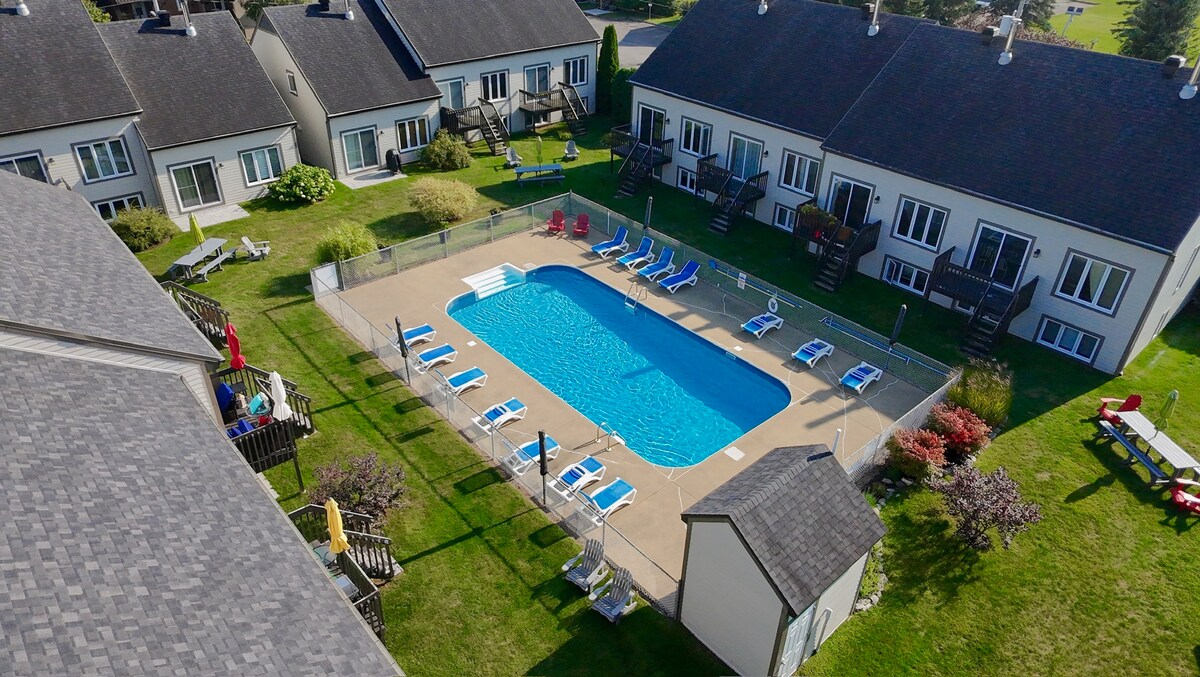 Dragulj na tem območju! Toplo stanovanje s pogledom na Mont Sainte-Anne, le tri minute od gore. V vseh letnih časih uživajte v privilegiranem dostopu do ogrevanega notranjega bazena in številnih dejavnosti na prostem, ki jih lahko počnete na tem območju (dodatne informacije najdete spodaj). Od središča mesta Quebec vas loči 30 minut. To popolnoma prenovljeno stanovanje vas bo zagotovo zadovoljilo.