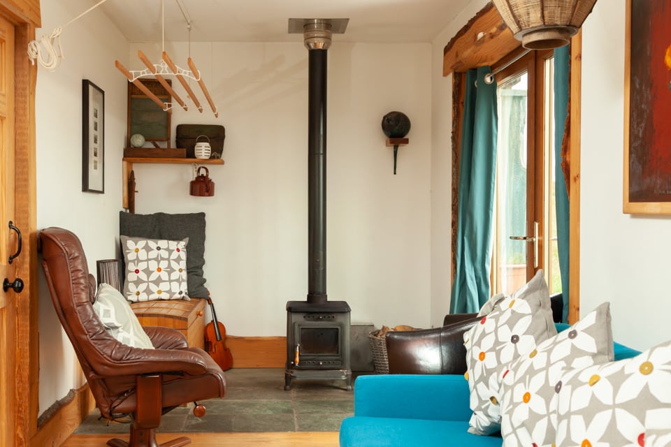 The Wee Wooden Yurt at Caolas Gallery is a green covered, original wood round house with picture windows giving a uninterrupted view of the sea across to the Isle of Scalpay and South East Harris. Značilnosti vključujejo osrednje kupolasto strešno okno, kopalnico, kuhinjo, udobne stole in štedilnik na drva ter seveda zakonsko posteljo. Namestitev ima južni vidik z množicami naravne svetlobe, je dobro izolirana, topla in udobna