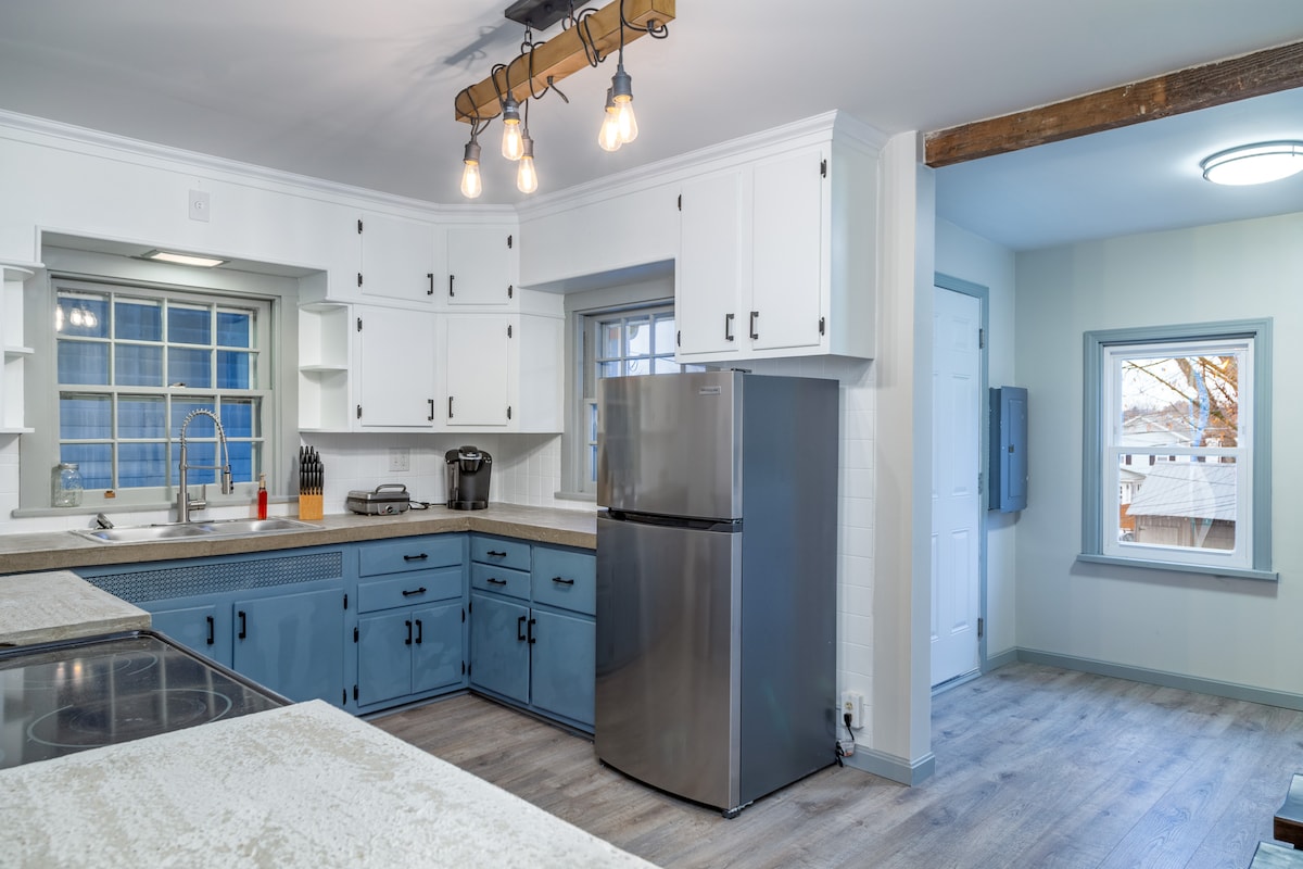 To pred kratkim prenovljeno dvosobno stanovanje se nahaja eno ulico stran od ulice Market St in je le nekaj minut stran od Bucknella. Stanovanje se nahaja v drugem nadstropju našega zgodovinskega prenočišča v Lewisburgu. Prha s ploščicami, čudovita opečnata poudarjena stena, obnovljena tla, betonski kuhinjski pulti, W/D, zakonske postelje z zakonsko posteljo in zakonskimi posteljami. Zasebni dostop po ulici pred hišo, parkirišče in dostop skozi dvorišče. Na voljo je tudi parkiranje na ulici. Veselimo se, da vas bomo sprejeli. Številka dovoljenja LB22ST015