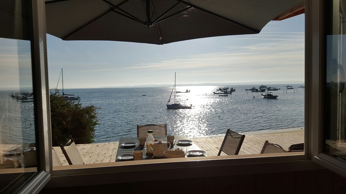 Preprosta in mirna koča v Le Canonu z neoviranim razgledom na bazen in zasebnim pontonom. Ob visoki plimi lahko plavate neposredno s pontona. Ob oseki je plaža ob vznožju namestitve. Spalnica z zakonsko posteljo, pisalna miza, ki lahko sprejme talno vzmetnico, in veliko parcelo (približno 300 m2), kjer je mogoče postaviti šotore. Zunanja kuhinja, velika terasa, kopalnica. Redko bivališče, kjer lahko v celoti uživate v bazenu.