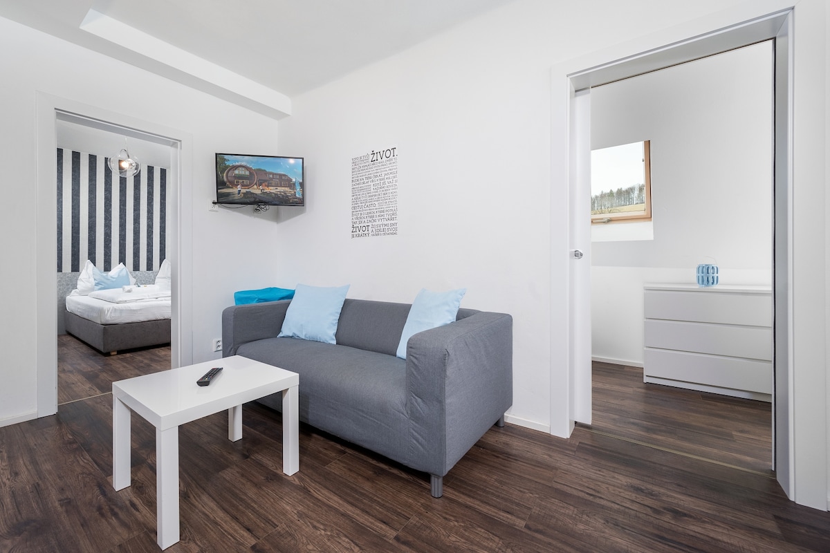 Ponujamo razkošno opremljeno 3kk stanovanje Bedřich VI. velikosti 75 m2, ki se nahaja na meji med Bedřichovom in Genovo nad Nisoujem v gorovju Jizera. Apartma Bedřich VI je idealen kraj za vsak vaš dogodek. Ne glede na to, ali ste po koncu tedna popolne sprostitve ali pa načrtujete aktiven oddih s prijatelji, je naše stanovanje pravi kraj za vas.
