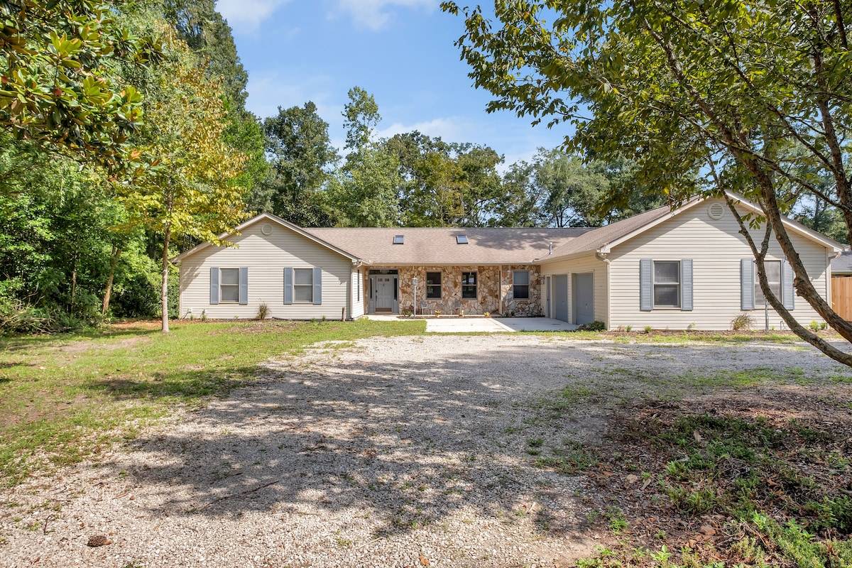 Iščete bivališče v državi, ki izpostavlja vse vidike podeželskega življenja? Ne iščite več … naše stanovanje »mother in law suite« (ki se nahaja za našim domom) ponuja spanje za 2 osebi, zasebni ribnik, kjer lahko veslaš na kajaku ali majhnem čolnu, pogled na naš vrt, kjer lahko nabirate sezonsko zelenjavo (za doplačilo), v bližini pa so tudi pohodniške poti (rajski vrt in državni park Torreya) in plaže na Floridi (otok St George). Ponuja tudi ognjišče za pozne nočne požare in opazovanje zvezd.