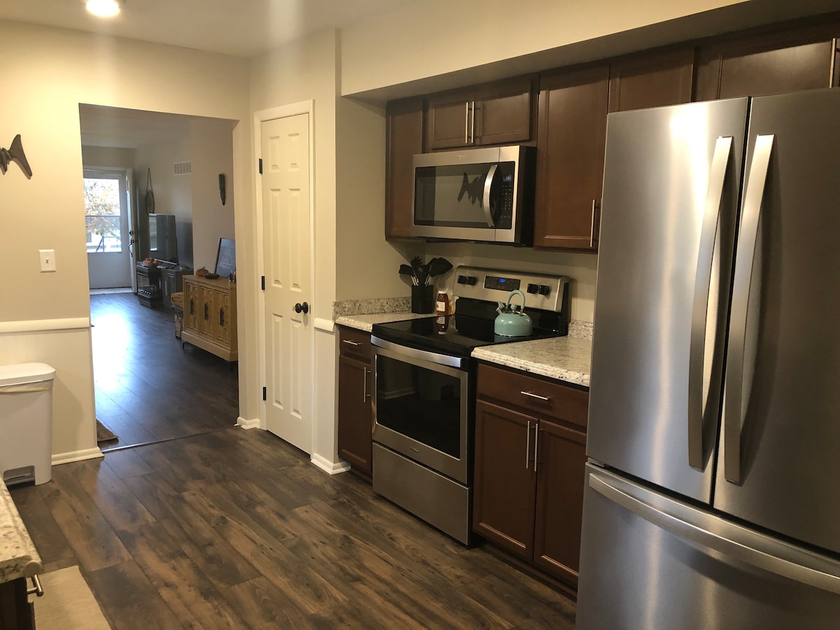 Lake view, firepit, fireplace, coffee bar, bike path access, walking distance to the historic town of Xenia with shopping and local eateries. Near Yellow Springs, Clifton Mill, Greene County Expo Center, Waynesville. Cozy, tastefully decorated 2 bedroom private home overlooking beautiful park with playground and lake in the historic town of Xenia. Completely renovated. The Lake House is centrally located between Yellow Springs, Caesar's Creek, Waynesville, WPAFB, and Dayton, Ohio.