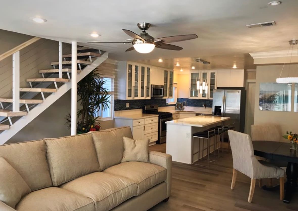 The private second floor of our home (we live downstairs); completely remodeled. This is a classic 1960's beach house with brand new windows, doors, floors, kitchen, bathrooms, paint, furnishings, appliances - you name it. We are super proud of the finished look and know it will make a wonderful home away from home! Style is an eclectic mix of beachy mid-century and maximalism (read: FUN). Must be 25 to book. Do not book this for your kids. Owner managed with attention to detail.